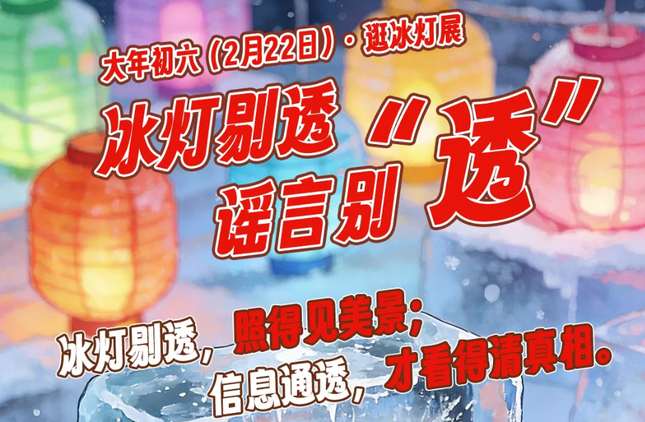 AI海报丨新春辟谣日历:冰灯剔透 谣言别“透”