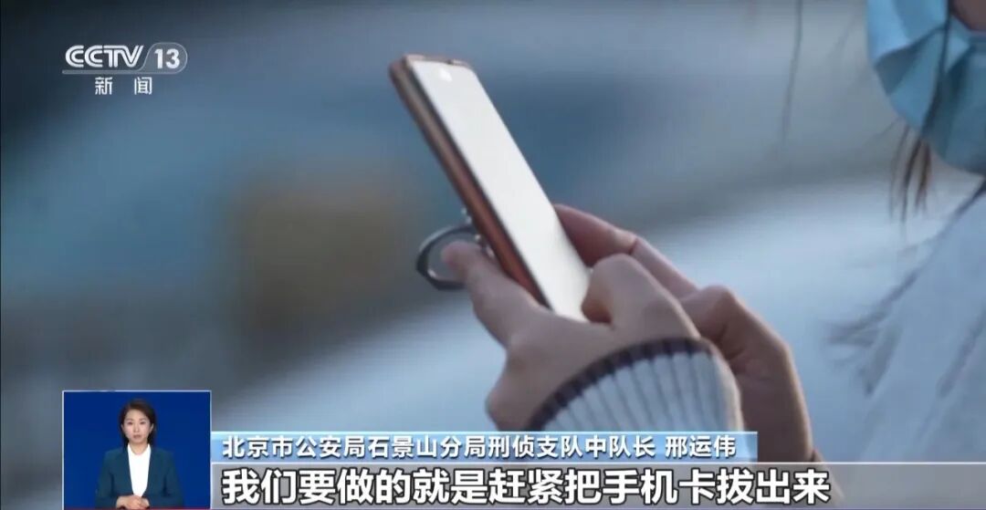 北京市公安局石景山分局刑侦支队中队长 邢运伟:手机被远程控制或者黑屏的话,关机是关不了的,我们要做的是,赶紧把手机卡拔出来,如果连着家里的Wi-Fi,一定要把Wi-Fi给关了,这样对方就不能肆意操作我们的手机了。下一步就要及时给各个银行打电话,把我们的银行卡赶紧挂失,以免对方还继续刷我们的钱。随后就要赶紧打110报警,让警方及时对银行卡进行止付。